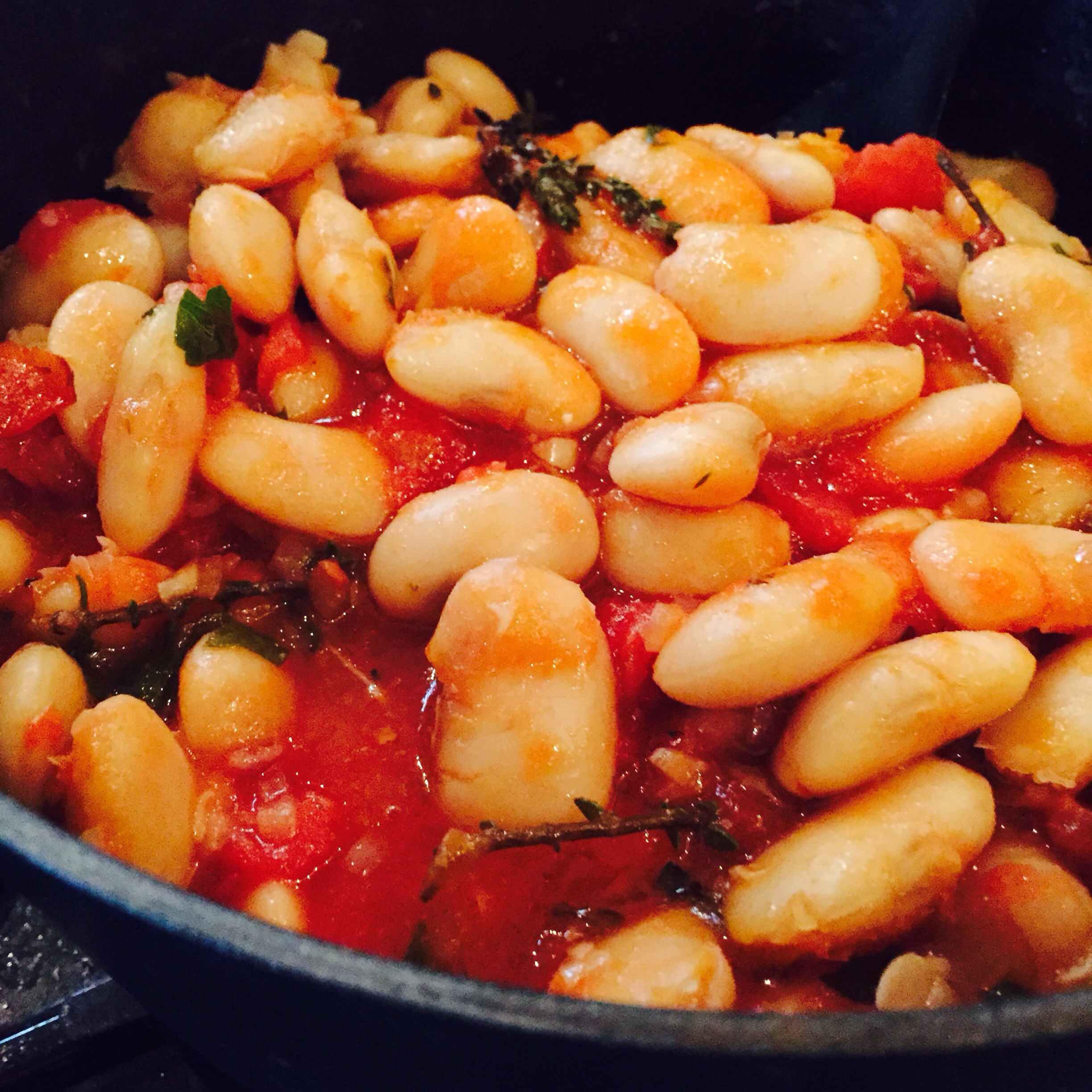 As I mentioned before I serve the beans as part of a roast chicken or lamb with Greek salad and lots of crusty bread.