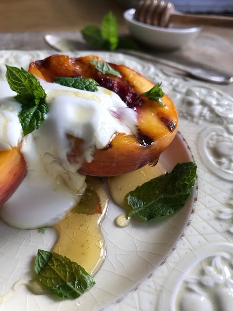 It takes minutes to prep, which involves cutting your peaches in half removing the stones and getting your griddle pan very hot, then you’re good to go! This really is a great recipe to have up your sleeve!