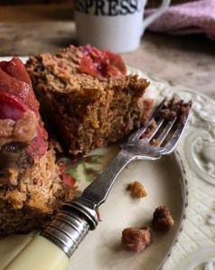 My plums were a little tart which I like but I guess you could always make sure you sprinkle extra sugar before the bake (see recipe / method below ) it works well for me because I’m not over keen on really sweet cakes! I’ve just had a piece with a coffee and it was delicious after being in the fridge since Monday! – which is what reminded me to post the recipe!! I should also add here that this is all mixed / prepared in a saucepan stirred with a spoon, not only simple but just as importantly minimum clear up!!!!