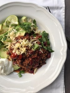 I’m sure I don’t need to tell you how versatile this is because everyone has their own way of eating chilli, but to give you a few pointers I’ll tell you a few of the ways we eat it! Obviously with rice, jacket potato, it’s great with nachos lots of grated cheese and popped in the oven until the cheese has melted, I often top mine with a dollop of Greek yogurt or soured cream, grated cheese, avocado and coriander with a squirt of lime, the list is endless!