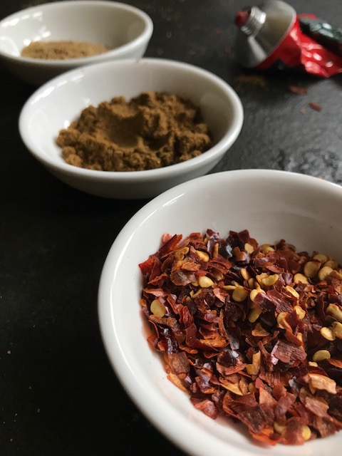 Turn up the heat and add the mince in batches to brown, don’t add more until it’s got some colour. Also I drain off any oil that’s produced from the mince. Once that’s ready add your cumin, coriander and chilli flakes give it a good stir and cook for a minute.
