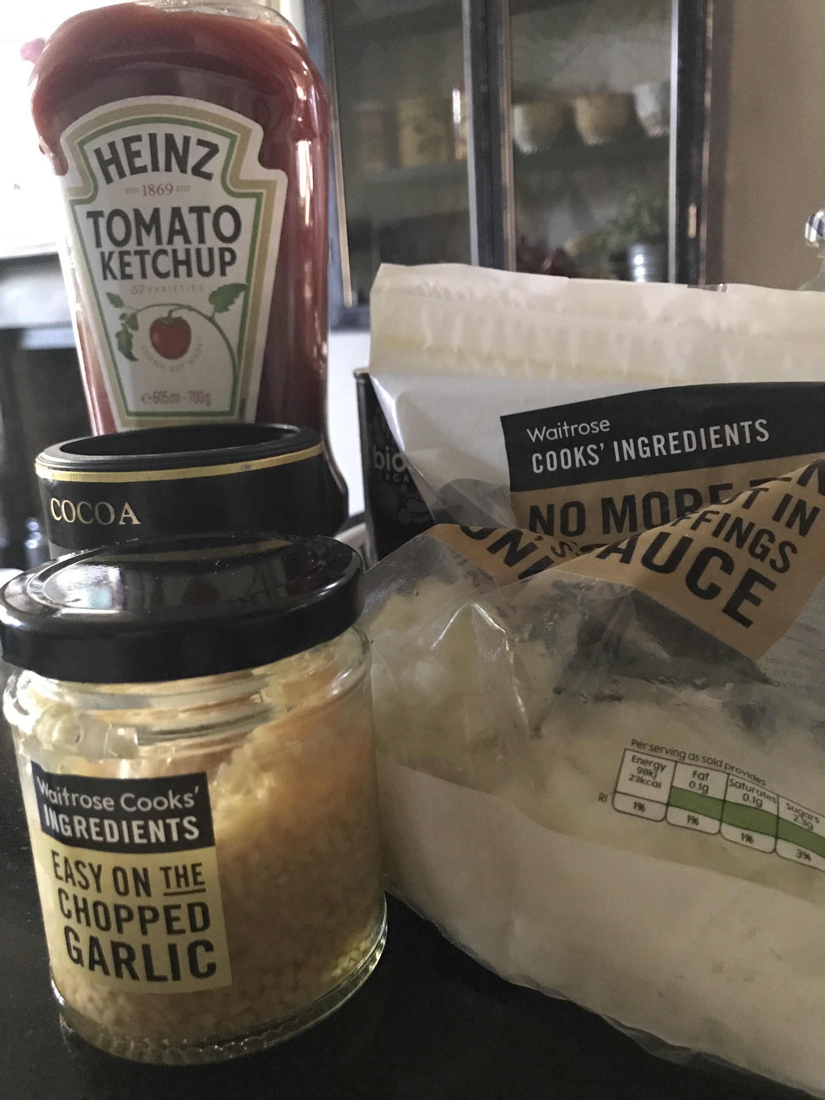 Okay let’s get to it! My couple of little cheats are ready chopped frozen onions and chopped garlic in a jar. The flavour isn’t compromised in the slightest so don’t beat yourself up for having a short cut and let’s face it onions can be a nightmare to chop! It’s not about feeeling bad it’s about feeling smug! Yes I add chocolate and ketchup!! …
