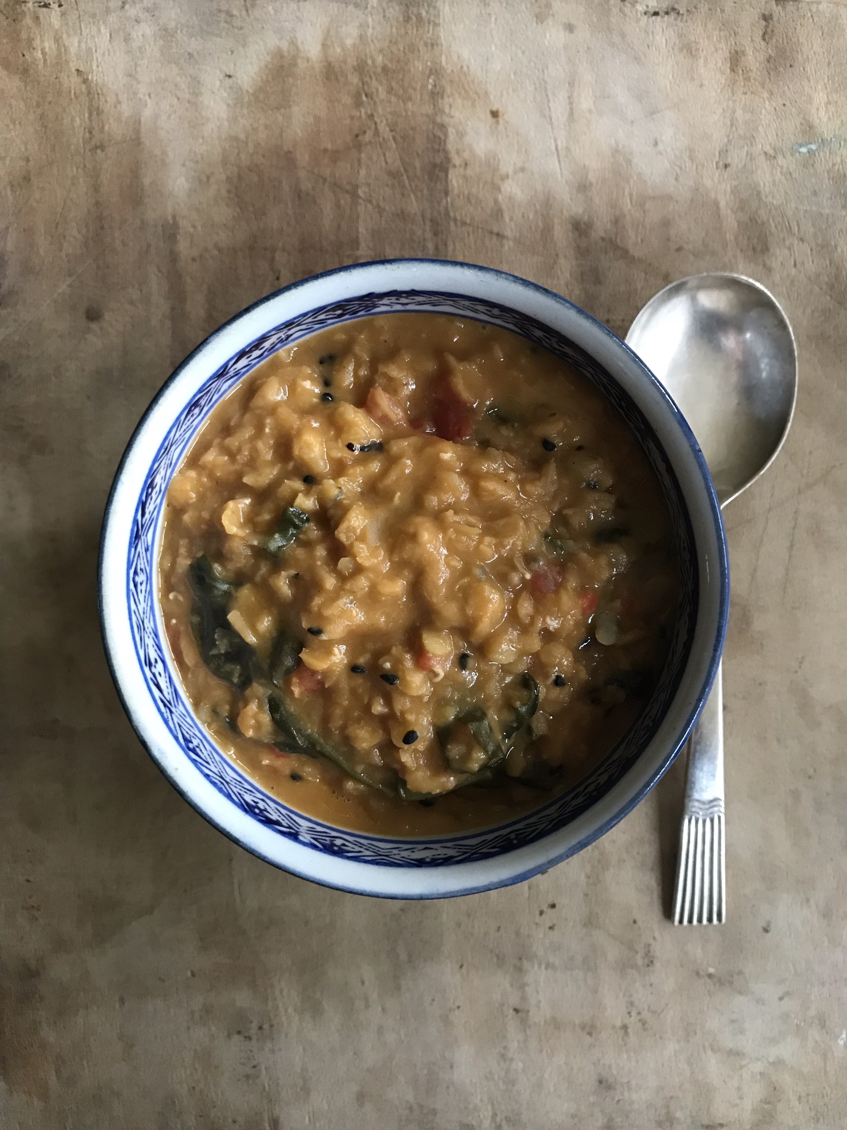 When it has 5 mins cooking time left stir through the spinach and cook gently until it has all combined with the Dahl.
