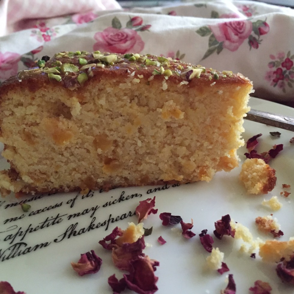 Apricot almond cake with rose water & cardamom